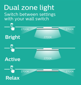 Svietidlo s výškou iba 4,5cm je vyrobené z kovu a hladkého mliečneho plastového difúzora, ktorý sa ľahko udržuje a rovnomerne rozptyľuje svetlo. Vysoko výkonný integrovaný LED zdroj vďaka technológii EyeComfort, zaisťuje svit, ktorý je veľmi šetrný pre vaše oči. Intenzitu svetla je možné krokovo stmievať pomocou klasického nástenného vypínača vďaka funkcii SceneSwitch. Svietidlo má navyše pamäťovú stopu, ktorá si vždy zapamätá posledné nastavenie.